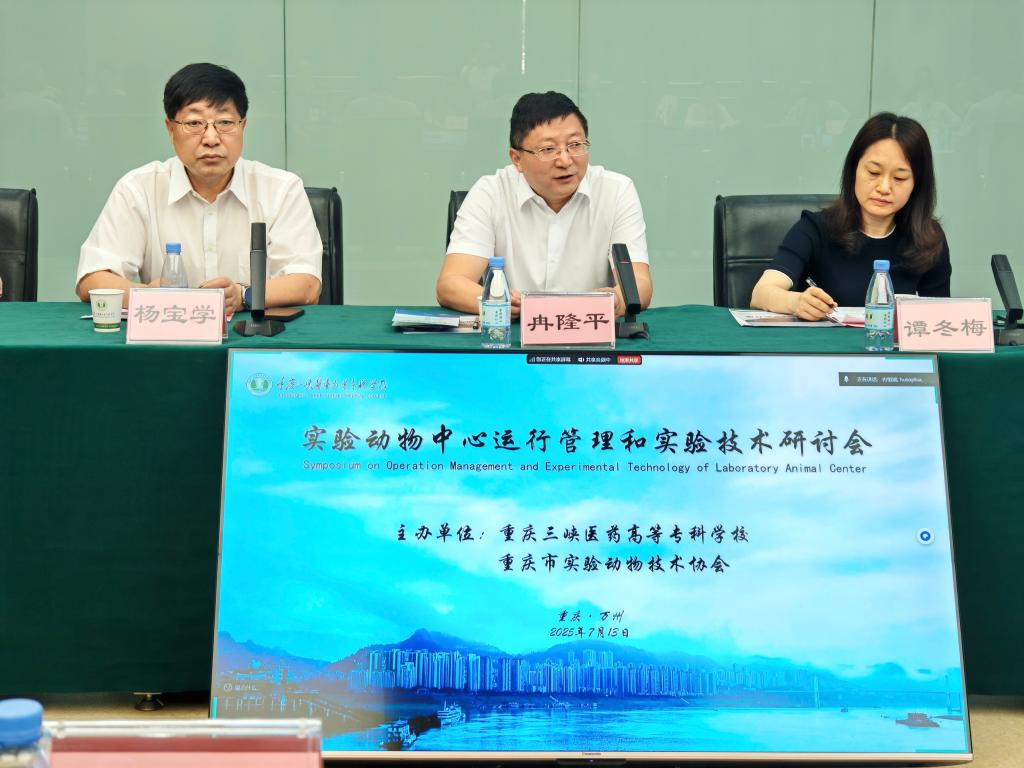 2025年7月13日,实验动物中心运行管理和实验技术研讨会暨实验动物中心揭牌仪式在我校学术中心205隆重举行。学校党委副书记、校长冉隆平,学校党委委员、副校长李小山,重庆市实验动物技术协会谭冬梅秘书长和胡辉副会长万州区科技局周靖科长,北京大学杨宝学教授,陆军军医大学王勇教授,重庆大学叶治家教授,重庆医科大学杨根岭博士,北京大学黄之贞博士等专家学者,以及来自重庆医药高等专科学校附属第一医院、重庆大学附属三峡医院、三峡学院等共70余人参会,共话实验动物领域前沿发展。出席会议的还有发展规划处、基础医学部等部门负责人。本次会议通过线上线下形式开展,重庆医药高等专科学校10余人线上参会