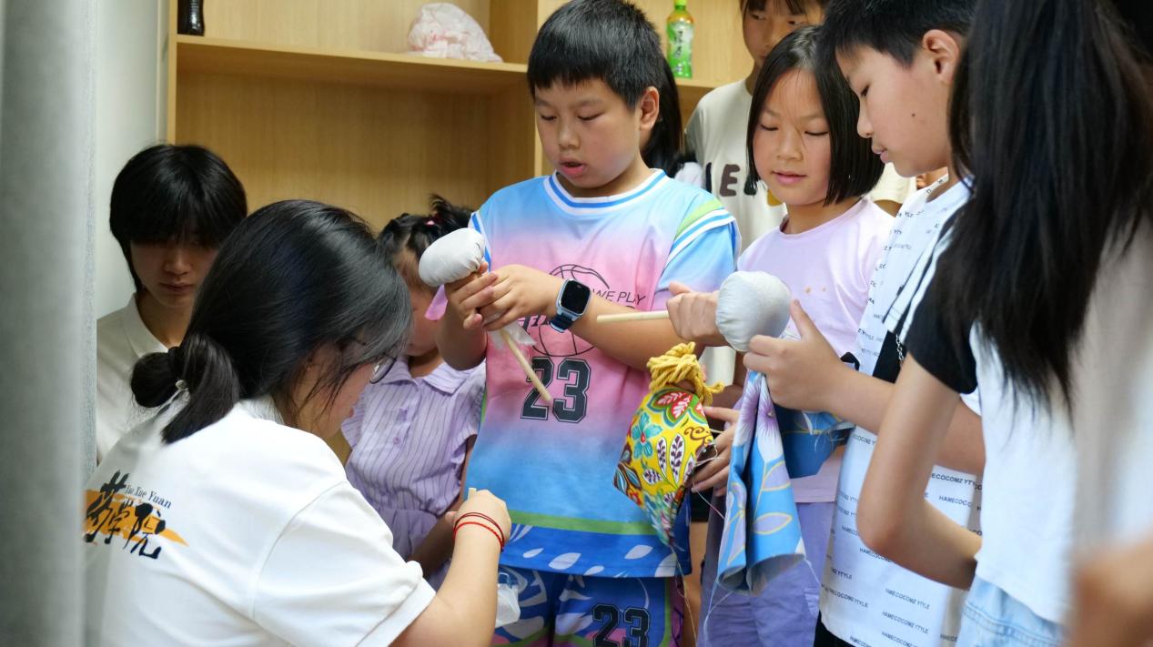 7月5日,志愿实践团在鸡鸣乡社区开展了一场充满趣味与文化底蕴的中药文化实践活动。通过DIY中草药拓印、制作香囊、艾草锤、漆扇绘制、扭扭棒等多彩活动,吸引了众多居民和孩子前来参与。30 余种中药材实物标本整齐陈列,艾草的清香、陈皮的醇厚、枸杞的鲜红,成了最直观的教材。活动现场志愿者们从形状、气味入手,科普“陈皮既是调味品也是理气药”等知识,让居民通过触摸、嗅闻,近距离感受中药的独特魅力,让中药文化浸润人心。