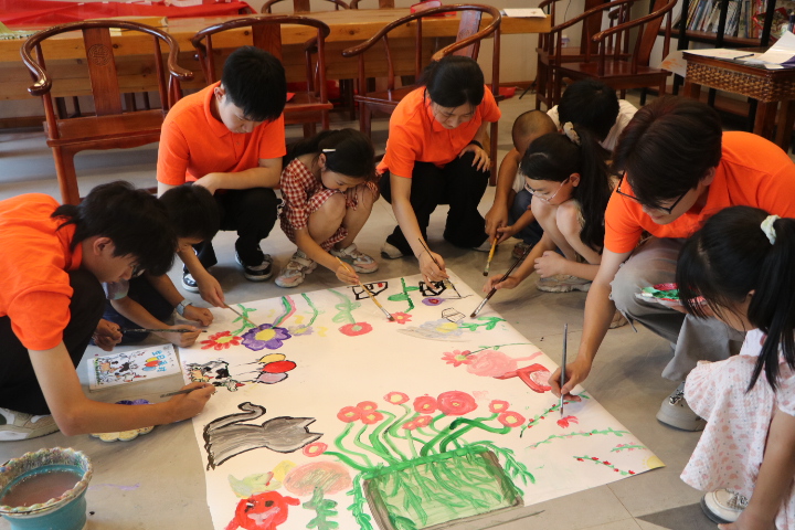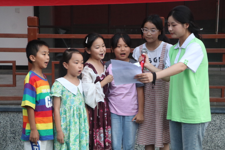 秉持着“在推广普通话中提升综合素养,在提升综合素养中学习普通话”的原则,团队成员策划了“童心向党”系列主题活动,普通话成了传承红色基因的有力载体。孩子们捧着《小萝卜头》《闪闪的红星》等书籍,参加“红岩故事汇”分享,用清澈童声诠释英雄故事;《小英雄雨来》《鸡毛信》的剧本里,他们化身小演员,在台词打磨中练口语、悟担当;听完志愿者用普通话讲述的乡村故事,孩子们拿起画笔,将语言里的画面变成了五彩斑斓的画作,动手又动脑。
