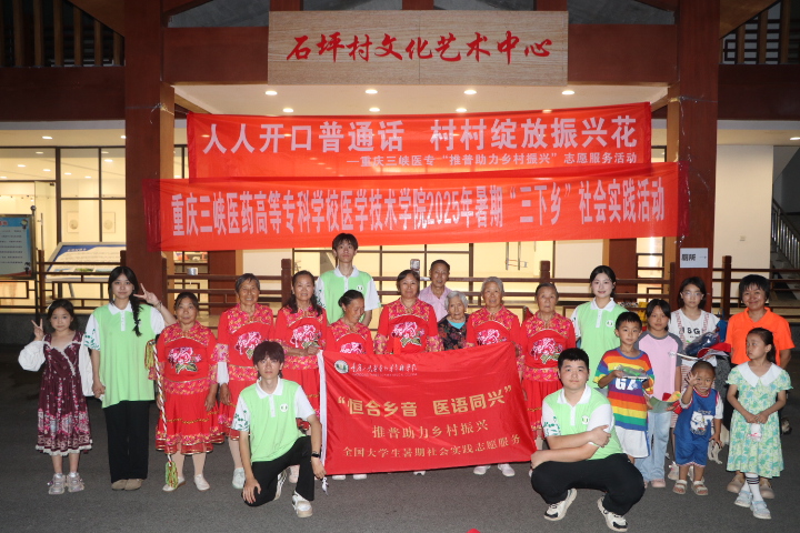 7月的万州区恒合土家族乡,青山含翠,乡音袅袅。重庆三峡医药高等专科学校“恒合乡音 医语同兴”推普志愿队走进万州区恒合土家族乡石坪村,用7天的时间编织了一段“语言筑基、文化润心、医心护航”的温暖故事。从入户走访到课堂传习,从红色浸润到敬老助老,从法治宣传到直播带货,志愿者们以青春之力,让普通话成为连接城乡的纽带,为乡村振兴注入鲜活动能。