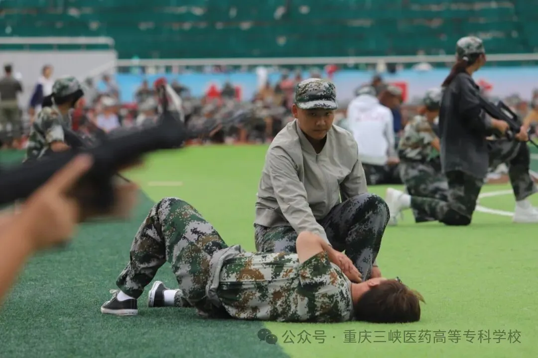 训练场上,队列练习从军姿到分列式,每个动作都凝聚着坚持;擒敌拳训练场上,吼声震天,动作刚劲,一招一式尽显青春力量;健康操练习则张弛有度,在紧张训练中有效调节身心。夜间拉练是一场对体力、毅力与协作的综合考验,队伍如长龙般静默前行,坚定的脚步声踏破夜色,锤炼着同学们的意志品质。作为医学院校,心肺复苏培训成为本次军训的特色亮点,专业医护人员系统讲解急救理论、分步示范操作要领,同学们跪地实操,在模拟人身上反复练习按压手法与节奏,将敬畏生命、勇于担当的医者情怀深植心田。