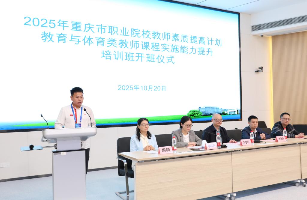 10月20日上午,2025年重庆市职业院校教师素质提高计划教育与体育类课程实施能力提升培训班开班仪式在学校第二教学楼报告厅举行。学校党委委员、副校长邓雪松,合作交流中心负责人李魁华,相关工作人员,以及来自全市各高职院校的30名体育与教育类骨干教师出席仪式。仪式由公共基础部负责人李红丹主持。