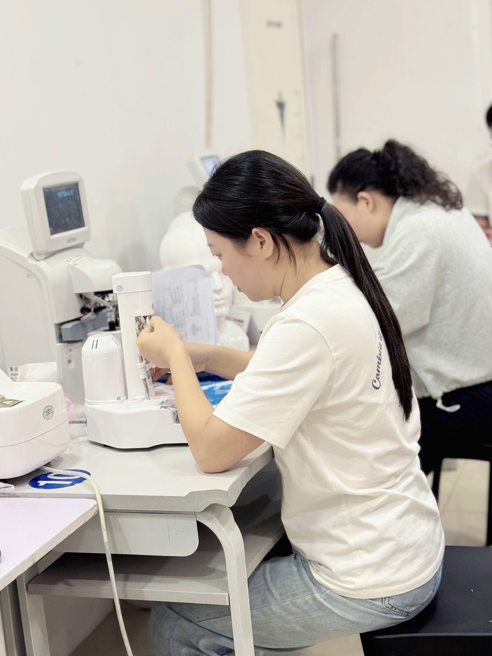 本次比赛汇聚了全市高校、医院及企业200余名顶尖选手同台竞技,竞争激烈。赛事对接行业实际,围绕验光定配两大核心项目展开,采用理论笔试+实操考核相结合的综合性赛制,旨在全面、深入地评估参赛者的专业知识储备、技术娴熟度及临场应变能力。经多轮比拼,我校师生发挥出色,教师周丽、张博渊在配镜组比赛中分获第一名和第五名,学生李春红在验光组比赛中荣获第一名。