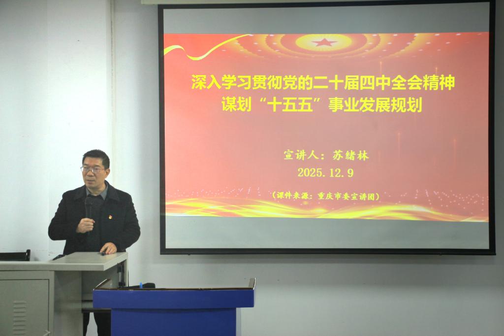 苏绪林指出,党的二十届四中全会是在我国迈上全面建设社会主义现代化国家新征程、向第二个百年奋斗目标进军的关键时期召开的一次重要会议。全会审议通过的《中共中央关于制定国民经济和社会发展第十五个五年规划的建议》,是引领未来发展的纲领性文件。他全面传达了全会对“十四五”发展成就的总结、对当前形势的分析以及必须坚持的重大原则,并系统阐释了全会关于构建现代化产业体系、实现科技自立自强等战略任务的部署,指出这为扎实推进中国式现代化提供了行动指南。