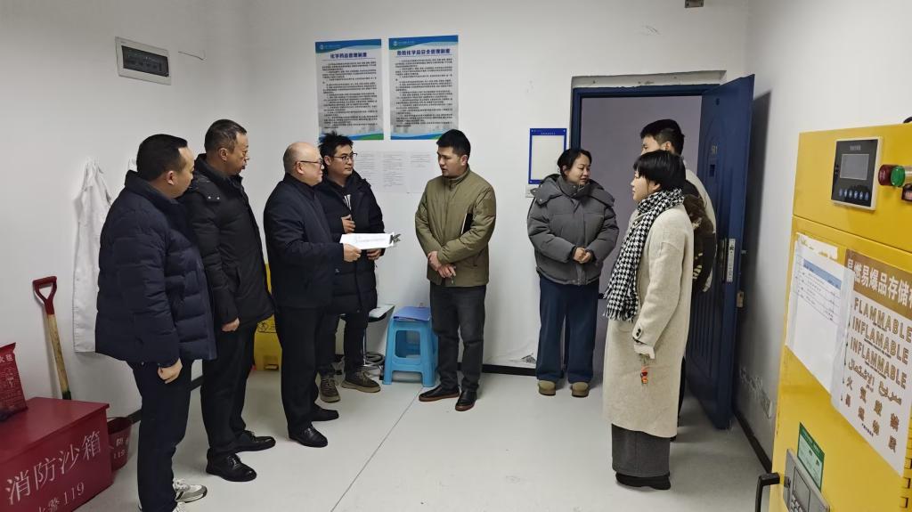 此次检查坚持“全覆盖、零容忍、重实效”原则,以安全管理制度落实、隐患排查整改、消防安全、重点部位和危化品管理等为重点,检查组一行深入到学生宿舍、施工场地、配电房、科技楼重点实验室、医学技术学院危化品存储室等场所,聚焦薄弱环节深入检查了相关部门岁末年初安全工作开展情况。检查过程中,邓雪松仔细询问各岗位安全责任落实、日常管理情况,认真查看各类记录台账,并对发现的部分区域存在的安全隐患、管理薄弱环节进行了现场指正,要求相关部门立即建立台账进行闭环整改,坚决将隐患消除在萌芽状态。