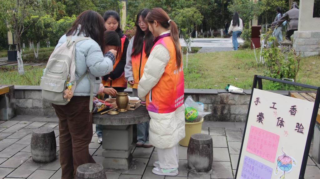游园会现场共设八大趣味关卡,将中医药知识融入互动挑战。在“中药辨识”区,参与者通过观察实物药材与图片,学习名称与功效;“寻经定位”环节,同学们于仁心湖经穴步道前,在人体模型上准确寻找穴位,领会针灸奥妙;“匠人心”手工坊人气高涨,大家亲手捣制艾草、薄荷等药材,制作个性化健康香囊;“医者仁心”诵读角则引来许多同学背诵《大医精诚》节选,在朗朗书声中感悟医德传承。参与者通过完成关卡收集积分,可兑换中医药文创产品与实用奖品。