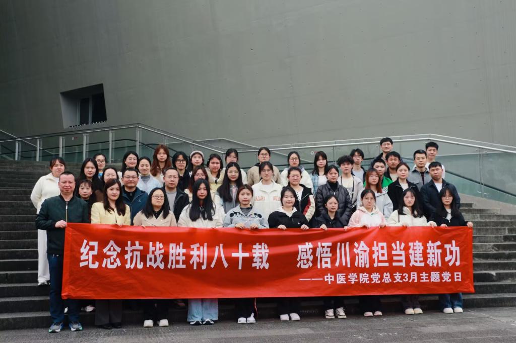 为深入贯彻习近平总书记关于弘扬抗战精神、加强革命文物保护利用的重要指示精神,认真落实中共中央及上级党组织关于深入开展树立和践行正确政绩观学习教育的工作部署,扎实推进爱国主义教育、党性教育与正确政绩观学习教育走深走实,3月27日下午,中医学院党总支组织党员师生及学生代表赴重庆三峡移民纪念馆,参观由川渝两地联合主办、入选中宣部等部门主题展览推介名单的《伟大胜利 川渝贡献——纪念中国人民抗日战争暨世界反法西斯战争胜利80周年专题展》,在回望历史中锤炼党性、凝聚力量、践行初心。