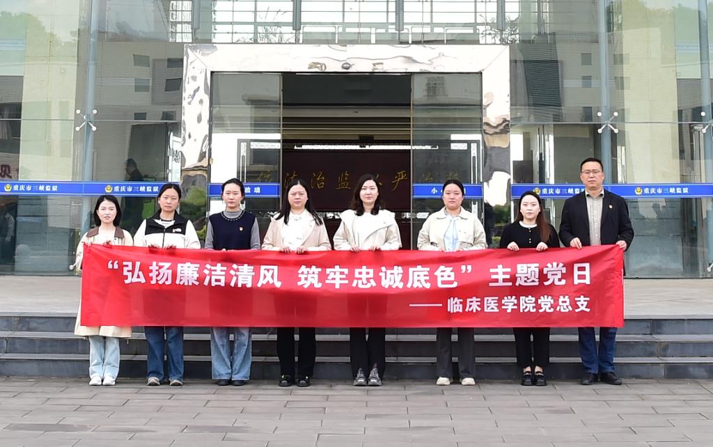 为深入贯彻全面从严治党要求,扎实推进树立和践行正确政绩观学习教育,强化党员廉洁自律意识,筑牢拒腐防变思想防线。4月24日,临床医学院党总支组织党员及教职工代表,赴重庆三峡监狱开展“弘扬廉洁清风 筑牢忠诚底色”主题党日。