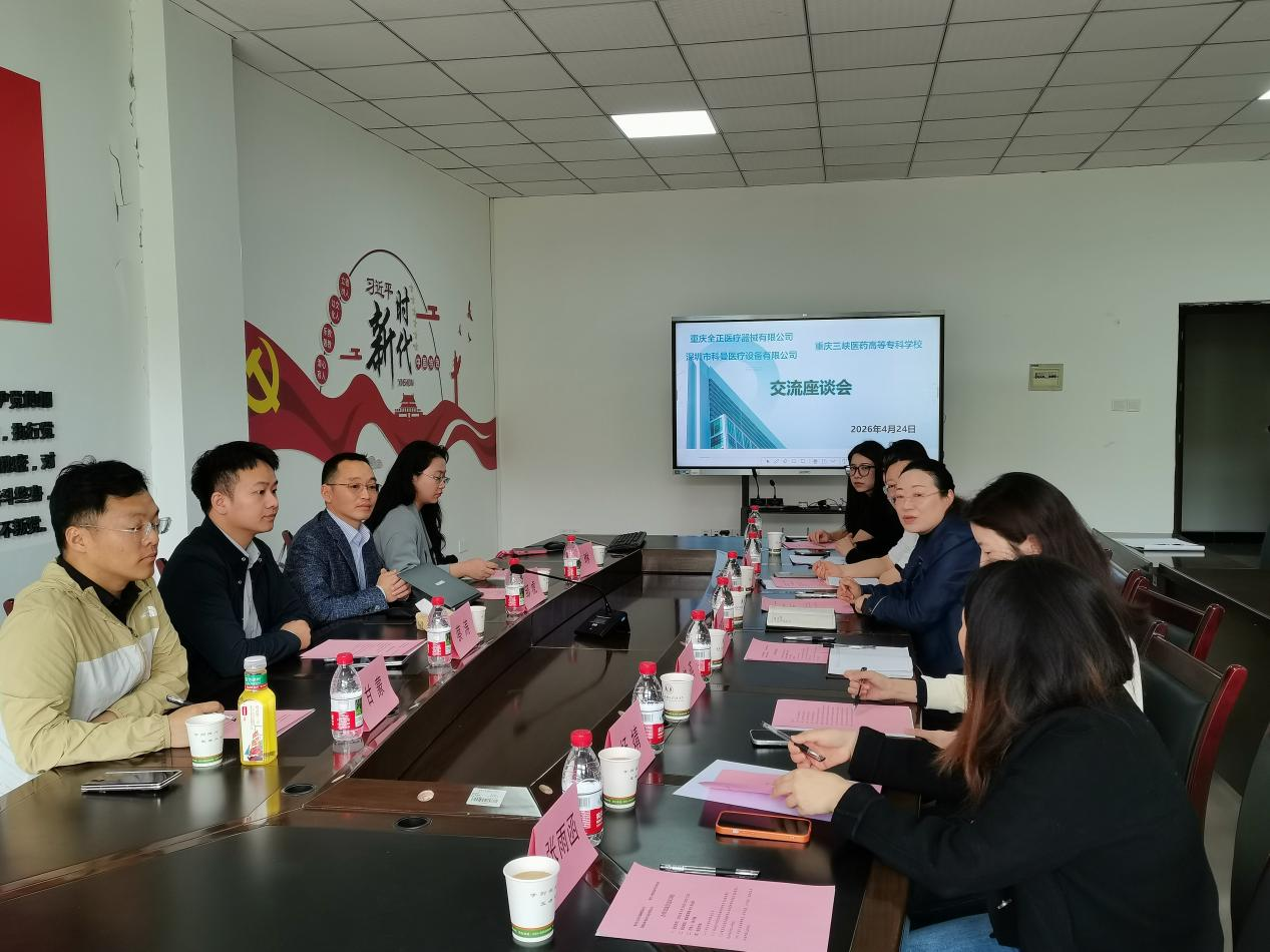 为深入推进产教融合,助力高素质应用型医疗人才培养,2026年4月24日,重庆全正医疗器械有限公司、深圳市科曼医疗设备有限公司代表邹虎一行4人到访我校,在临床医学院407会议室召开校企合作交流座谈会。临床医学院院长张冬梅、学院专任教师等十余人参加会议,会议由张冬梅主持。