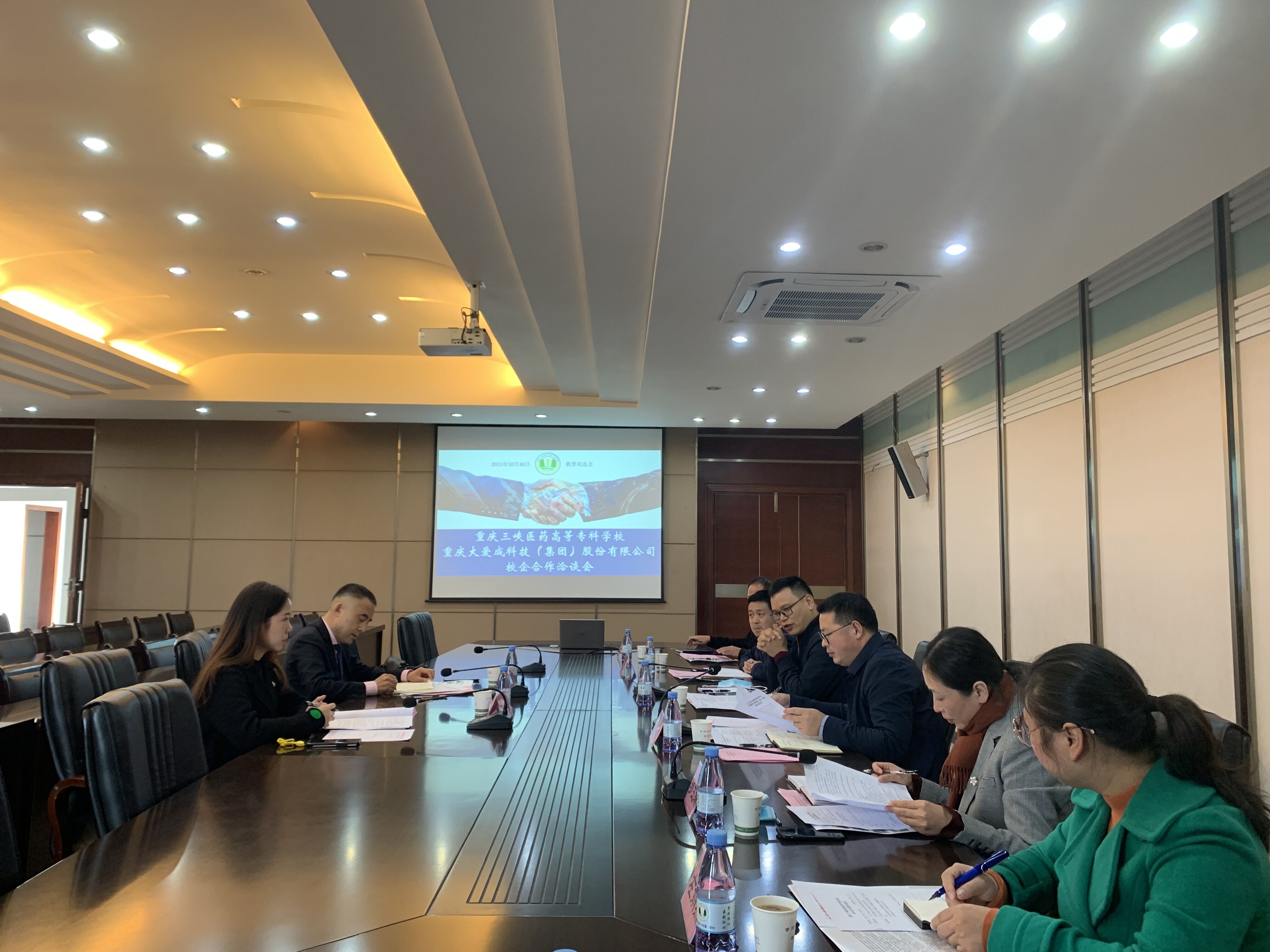 近日,重庆大爱成科技股份有限公司董事长渠浩一行到校洽谈,学校在行政楼318会议室组织召开校企合作洽谈会,学校副校长张建忠,医学技术学院、校企(院)合作部和基建后勤处等部门负责人及工作人员参会。会议由校企(院)合作部李魁华处长主持。