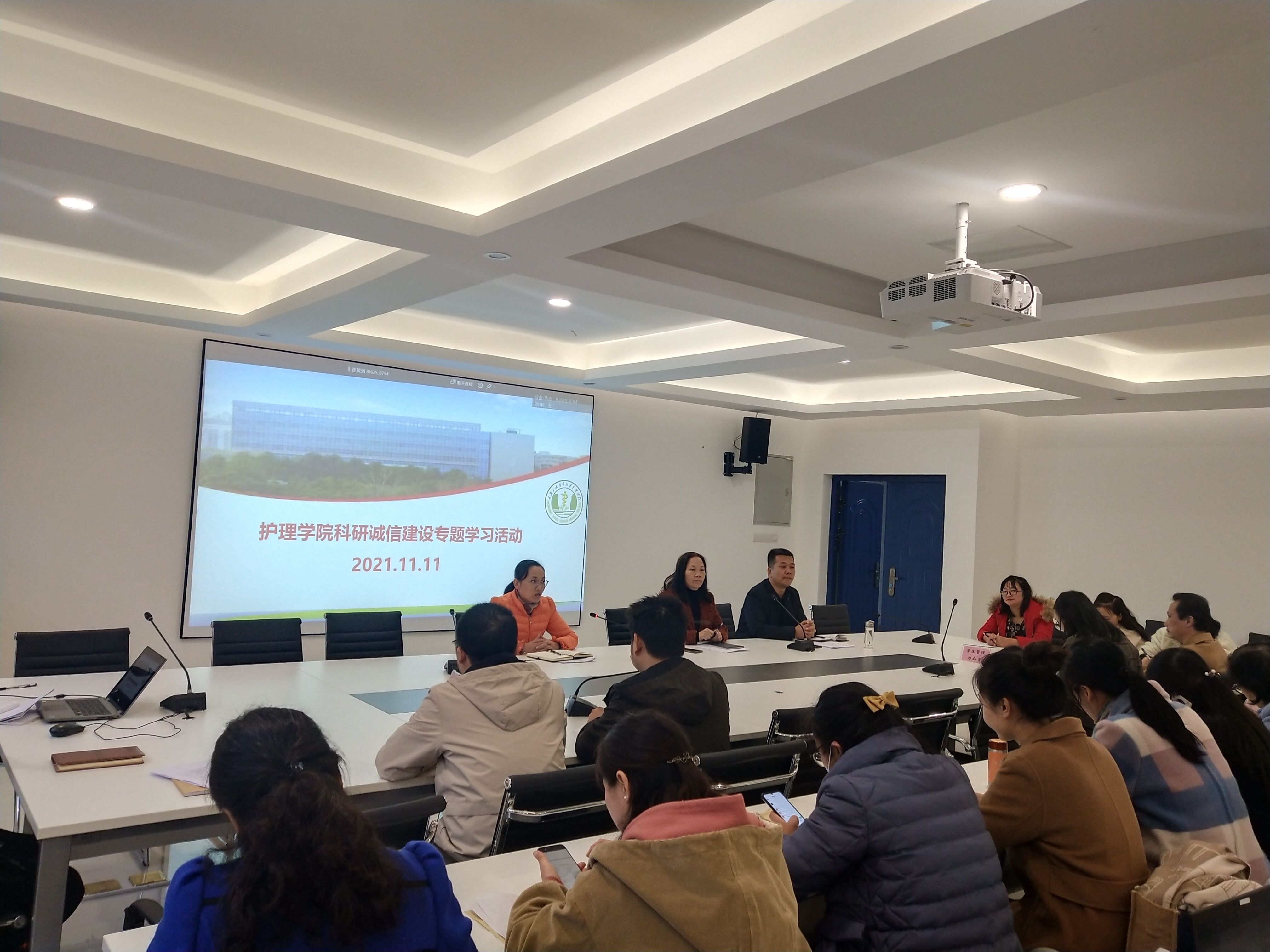 为深入贯彻党中央国务院、市教委和市卫健委关于科研诚信与作风学风建设部署要求,加强科研诚信建设,结合学校《重庆三峡医药高等专科学校科研诚信与作风学风建设专项教育政治活动实施方案》要求,11月11日,护理学院组织全院教职工及部分学生代表于新区B6-315会议室开展科研诚信建设专题学习活动,会议由副院长李为华主持。
