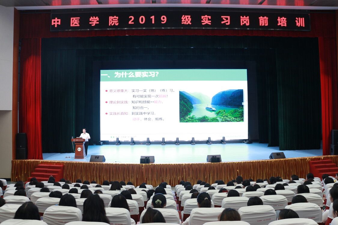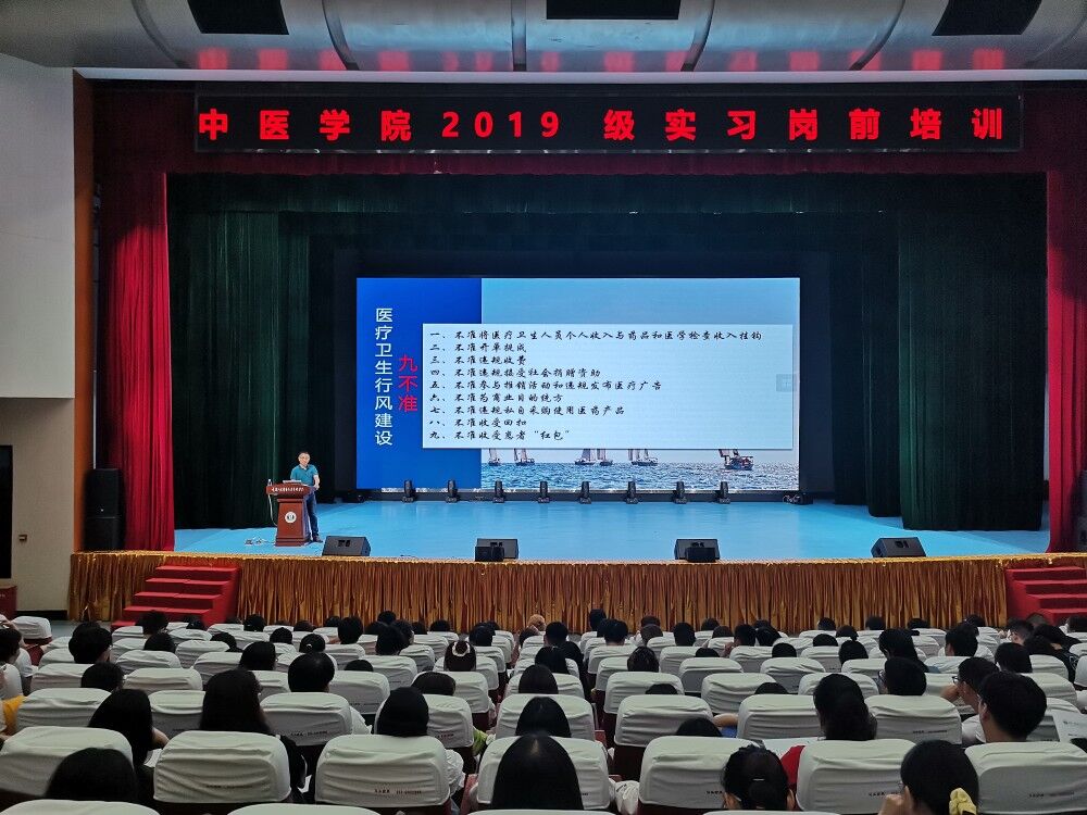为端正学生实习心态,熟悉实习的相关环节,强化廉政意识和职业道德,提升医患沟通技巧,2021年6月29日,中医学院在学校演播大厅分两个批次为2019级学生开展了实习岗前培训,内容涵盖实习教学要求、廉政教育、职业道德规范、医患沟通注意事项、医院核心制度、职业防护与暴露、医院感染防控等方面。中医、针灸推拿、中医骨伤、康复治疗技术、医学美容技术、中医养生保健6个专业24个班级1400余名同学参加了培训会。