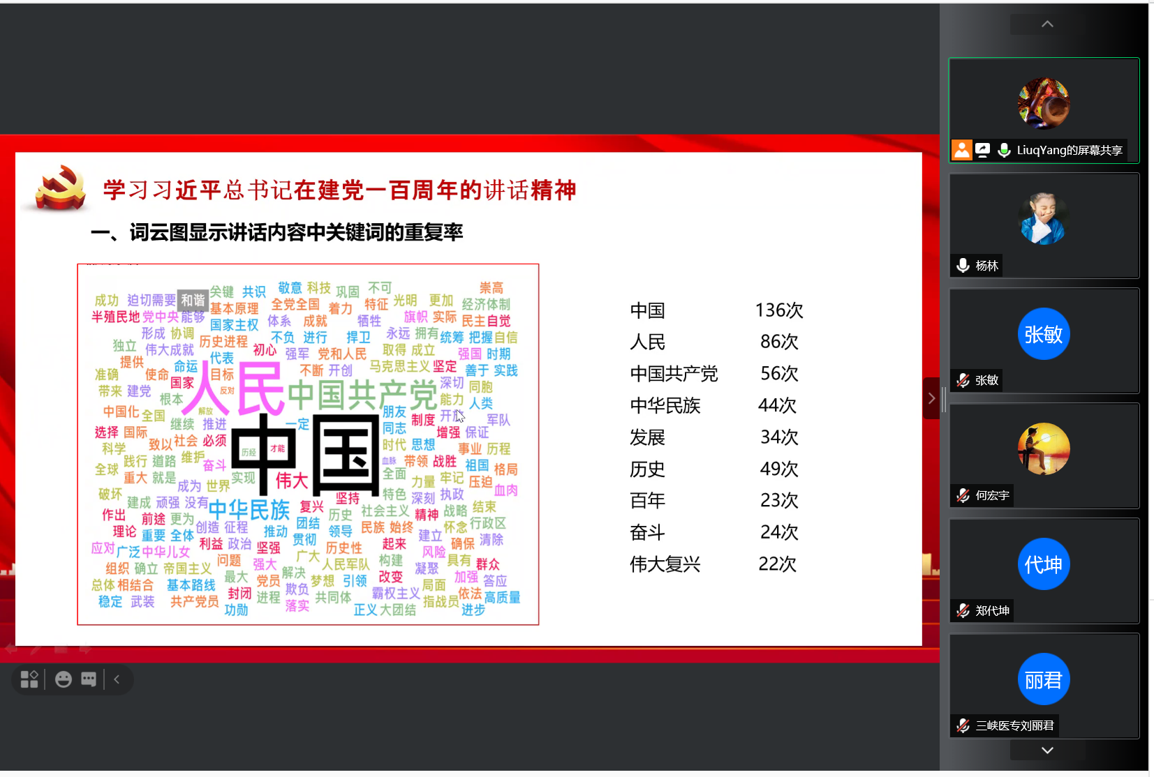 为深入学习贯彻“习近平总书记在庆祝中国共产党成立100周年大会上的重要讲话精神”和“关于教育工作重要论述”,8月24日上午,公共卫生与管理学院直属党支部使用智慧党建平台和“腾讯会议”组织开展8月主题党日(扩大)暨教职工政治理论学习。本次会议通过智慧党建平台签到,并记录会议全过程,全院党员教师、教职员工、实习学生党员参加线上学习。