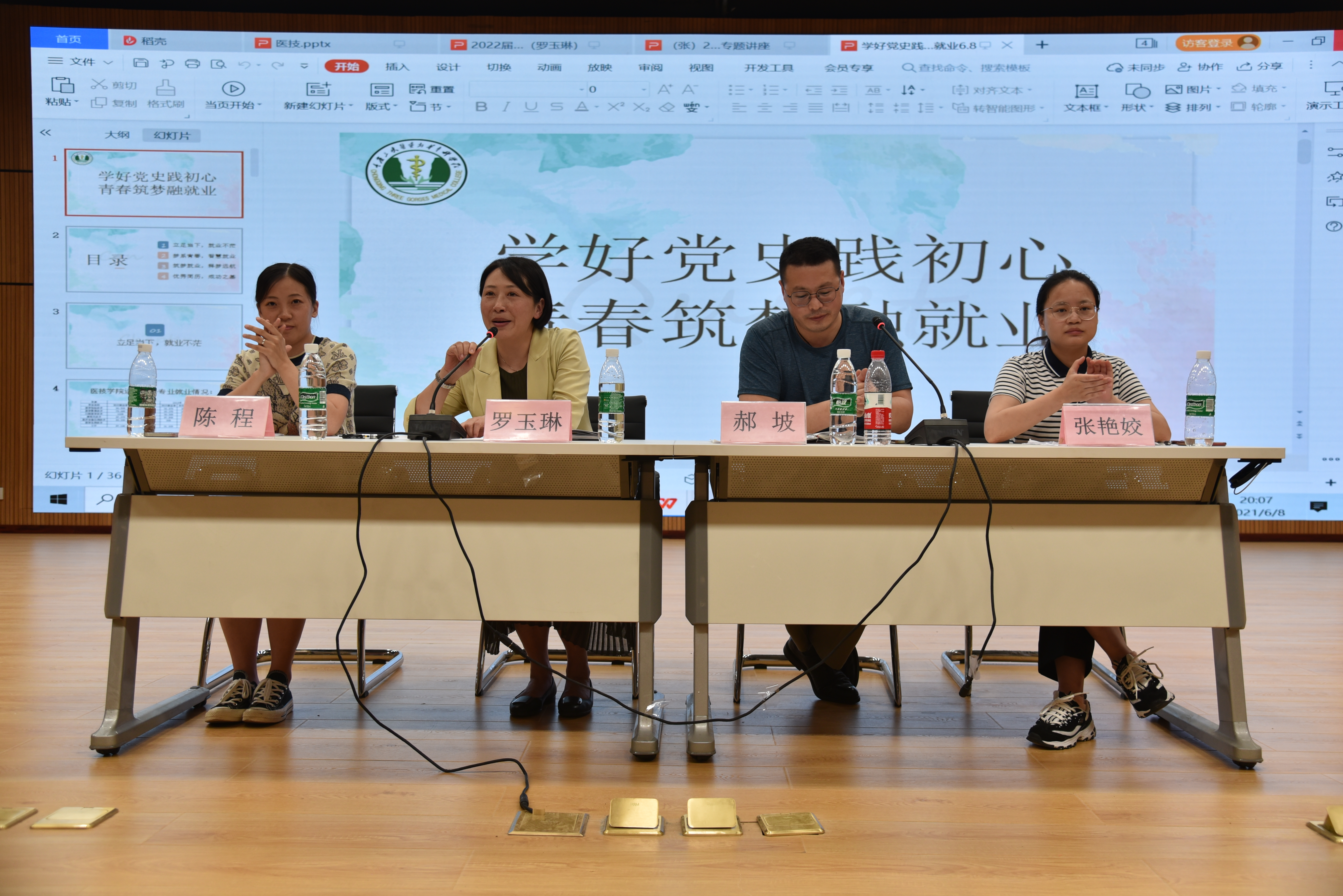 学院党总支书记罗玉琳从党史学习教育、医学生廉洁教育两个方面展开,强调党史学习教育的重要意义、学习内容、学习要求,组织学习《加强医疗卫生行风建设“九不准”》《2020年医疗行业作风建设工作专项行动方案》相关内容,对收受红包、暗吃回扣、医德失范等行业重点治理项目,以案例方式给同学们划出职业道德廉洁要求的“红线”,并以医学泰斗裘法祖、吴孟超的事迹引导大家树立正确职业道德价值观,将“学史明理、学史增信、学史崇德、学史力行”贯穿和践行到岗位生产实习中去,自我历练和修养职业道德、职业操守,为成为一名优秀的医学技术人才夯实职业发展的内核。