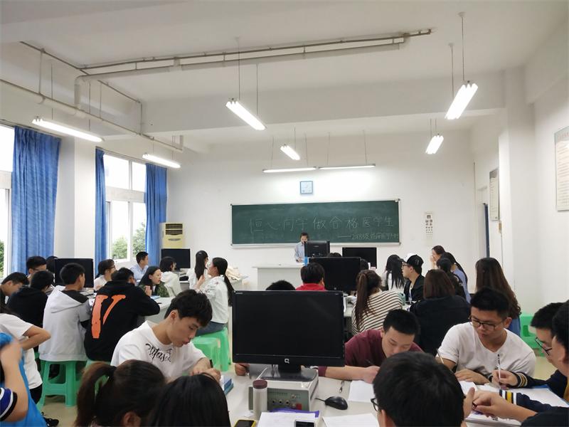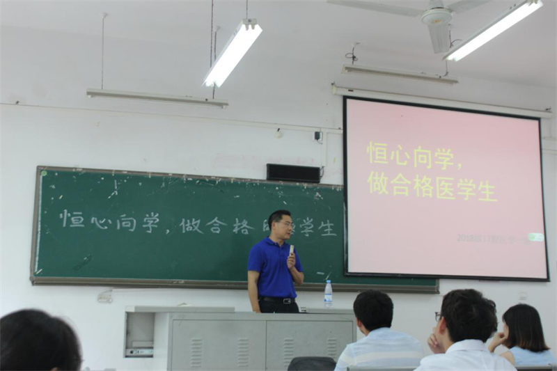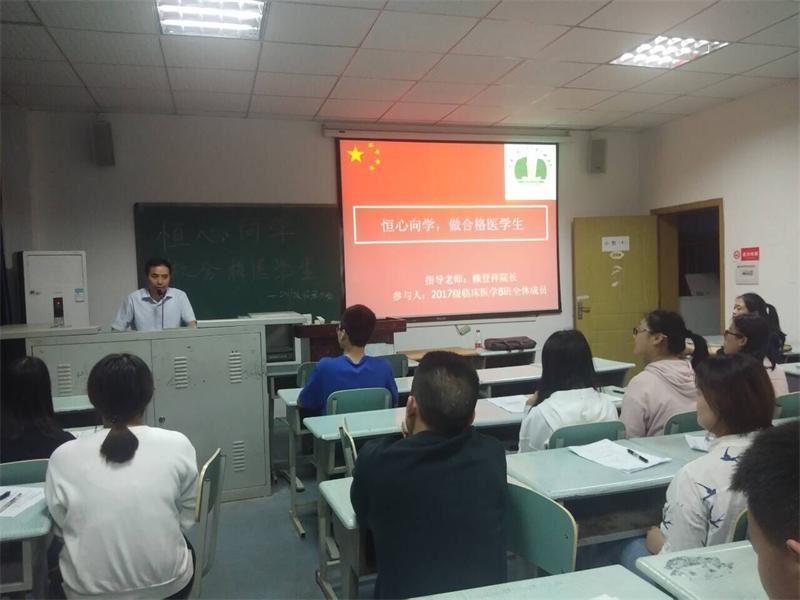 教师是人类灵魂的工程师,承担着立德树人的神圣使命,引导学生扣好人生第一粒扣子、找到人生正确方向。陈地龙校长参加18级口腔医学1班的“一学一做”教育实践活动,陈校长鼓励同学们,夯实自己的专业基础知识,趁着年轻奋力拼搏。同时,陈校长嘱咐同学们提升自己的情商,学习在人际交往中做一个受欢迎的人,摆正自己的位置,对自己有正确的定位。临床医学院长赖登祥、临床医学副院长程晓莉等领导,以及学校相关处室负责人也参加了学院的“一学一做”教育实践活动,就临床医学专业特色、学习的必要性和执考的重要性,给全体同学耐心细致的讲解,强调早临床、多临床、反复临床的重要意义,帮助同学们分析如何成为一名合格的医学生。