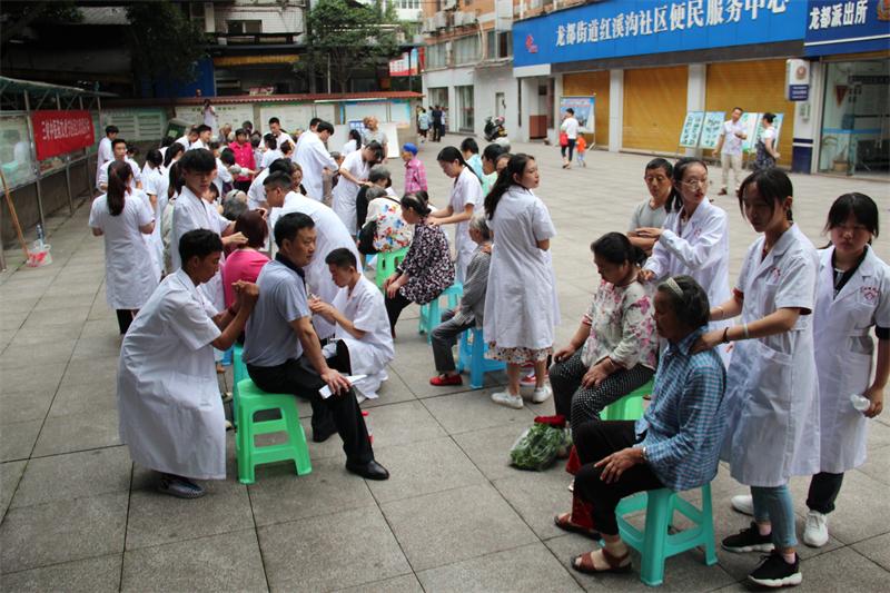 为深入学习贯彻党的十九大精神和习近平新时代中国特色社会主义思想,充分发挥党组织和党员的先锋模范作用,更好地服务群众,传播健康中医文化,6月15日上午,中医学院党总支组织了52名中医专家党员、学生党员、入党积极分子、团学骨干干部深入红溪沟社区,开展了“不忘初心跟党走,社区走义诊暖民心”主题党日。
