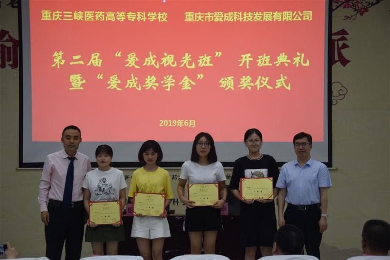 重庆市爱成科技发展有限公司成立于2008年4月14日,是重庆本土民营企业,是集眼科运营、眼视光投资管理于一体的大型集团化公司。 2018年4月28日,我校与重庆市爱成科技发展有限公司签订共育眼视光技术专业人才协议,双方在眼视光技术专业一年级学生中优选14人成立“爱成视光班”,开展订单培养。2018年4月28日,我校与重庆市爱成科技发展有限公司制订爱成基金管理办法,爱成公司每年独立出资40万元设立爱成基金,包括眼视光技术专业学生的奖学金4万元/年、眼视光技术专业教师的教师发展基金2万元/年,“爱成视光班”学生助学金800元/月/人。医学技术学院通过前期的筹备工作,已从2018级眼视光技术专业学生中遴选了21名同学组建了第二届“爱成视光班”,并选出了31名“爱成奖学金”获得者。