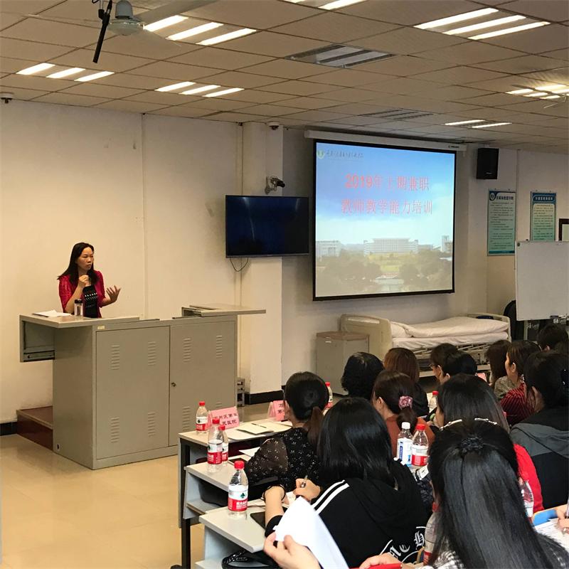 为了深化院校合作,加强兼职教师队伍建设,提高兼职教师教学能力及授课水平,4月18日下午,护理学院在第二实训楼开展2019年上期兼职教师教学能力培训,来自万州周边的三峡中心医院、妇幼保健院、第一人民医院、第五人民医院、万州区人民医院、附属医院、中医院7家医院的兼职教师,临床护理人员及护理学院全体教师共计120余名参加了会议。