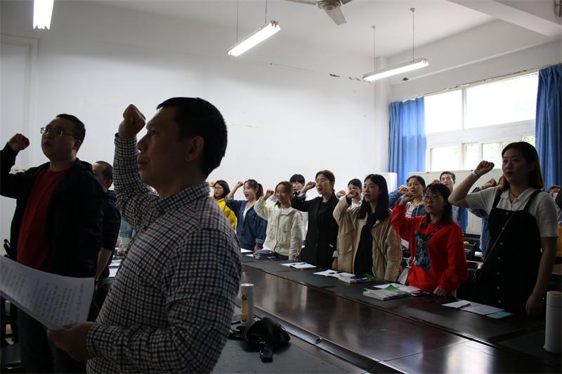 主题党日一开始,支部书记魏松同志组织全体党员学习了习近平总书记《在纪念“五·四”运动100周年大会上的讲话》和关于在广大知识分子中深入开展“弘扬爱国主义奋斗精神,建功立业新时代”的文件要求。通过学习,“五·四”精神入脑入心,进一步增强了师生党员的爱国情怀和历史使命感,充分激发了党员的模范先锋意识。教师们表示要立足岗位,潜心教书育人,做学生的良师益友,做学生思想上的导师;学生党员们表示要立足学习,学好专业技能,做学生中的典范,做岗位上的先锋。