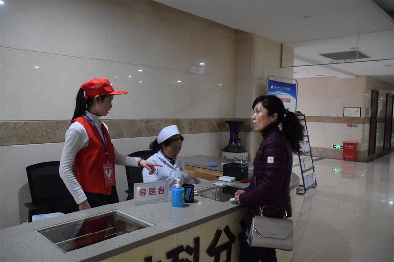 导医台志愿者正在接受患者咨询