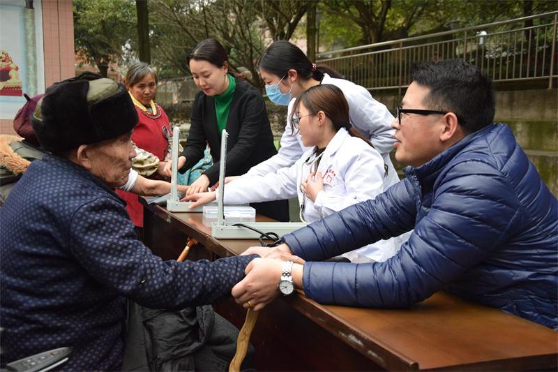 医学技术学院师生为老人测量血压