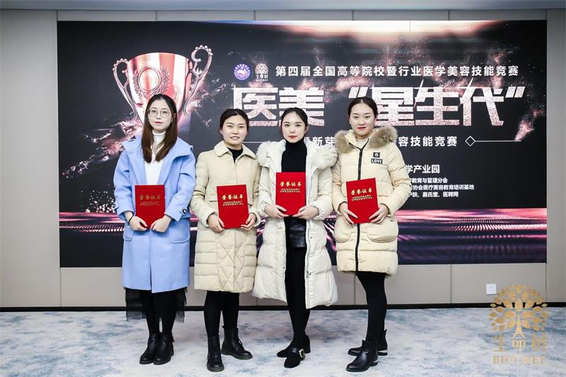 第四届全国高等院校暨行业美容技能竞赛于2018年12月12日在上海举行。中医学院4名选手参加了竞赛的全部项目,通过前期的选拔和培训,勤学苦练、勇于拼搏,在所有参赛队伍中脱颖而出,荣获团体一等奖。其中,16级医美1班卢珠林同学获文饰技能一等奖;16级医美2班代玉微同学获美容护肤技能二等奖;16级医美2班樊小蝶同学获美容医学咨询与沟通技能二等奖;17级医美2班杜洋同学获中医美容技能二等奖。刘子琦、张薇、罗红柳三位教师荣获“优秀指导教师”奖。