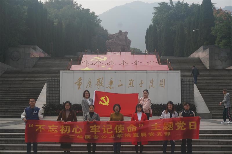 为深入贯彻学习习近平新时代中国特色社会主义思想和党的十九大精神,牢固树立“四个意识”,近日,公共卫生与管理学院直属党支部组织党员教师赴重庆红岩联线参观学习,开展“不忘初心牢记使命 传承红岩精神”的11月主题党日。