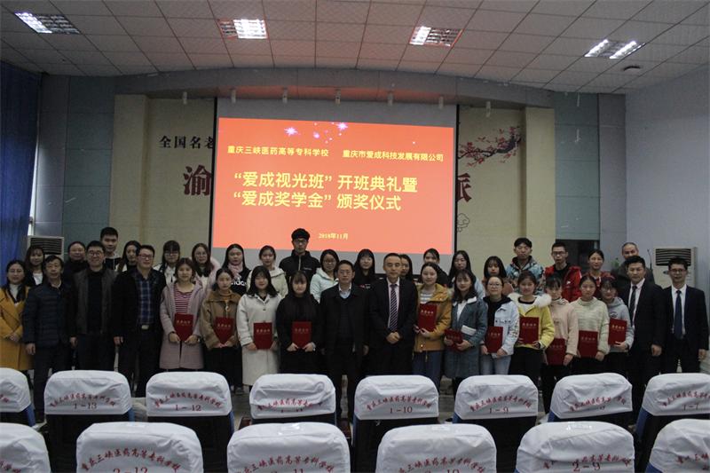 重庆市爱成科技发展有限公司成立于2008年4月14日,是重庆本土民营企业,是集眼科运营、眼视光投资管理于一体的大型集团化公司。 2018年4月28日,我校与重庆市爱成科技发展有限公司签订共育眼视光技术专业人才协议,双方在眼视光技术专业大学一年级学生中优选14人成立订单培养班,命名为“爱成视光班”。2018年11月16日,我校与重庆市爱成科技发展有限公司签订爱成基金管理办法,规定爱成奖学金每年4万元,用于奖励眼视光技术专业成绩优秀的学生。奖励标准为一等奖不低于2000元,二等奖不低于1000元,三等奖不低于500元的标准进行发放。