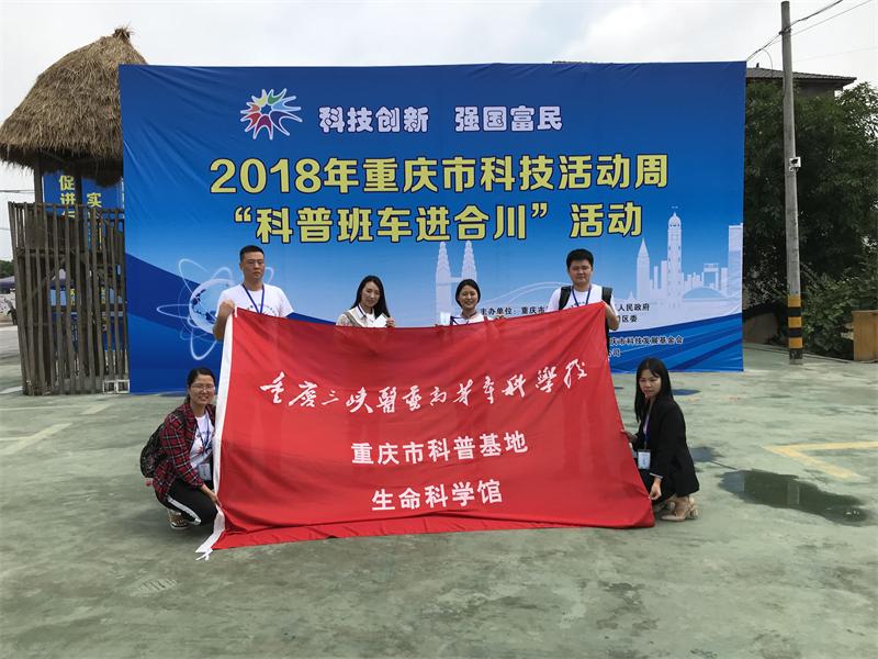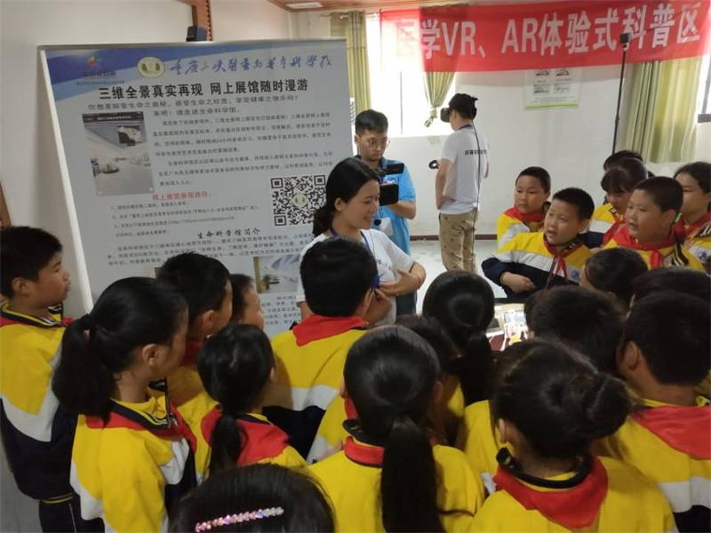 2018年重庆科技活动周期间,我校积极响应市科委的号召,于5月24-25日跟随着科普班车进区县“大部队”一起来到了合川区龙市镇友军生态园,将智能医学科学知识送到了2100余名当地中小学生的身边,让这些偏远山区学校学生、留守儿童等在家门口就能感受到智能医学的魅力。