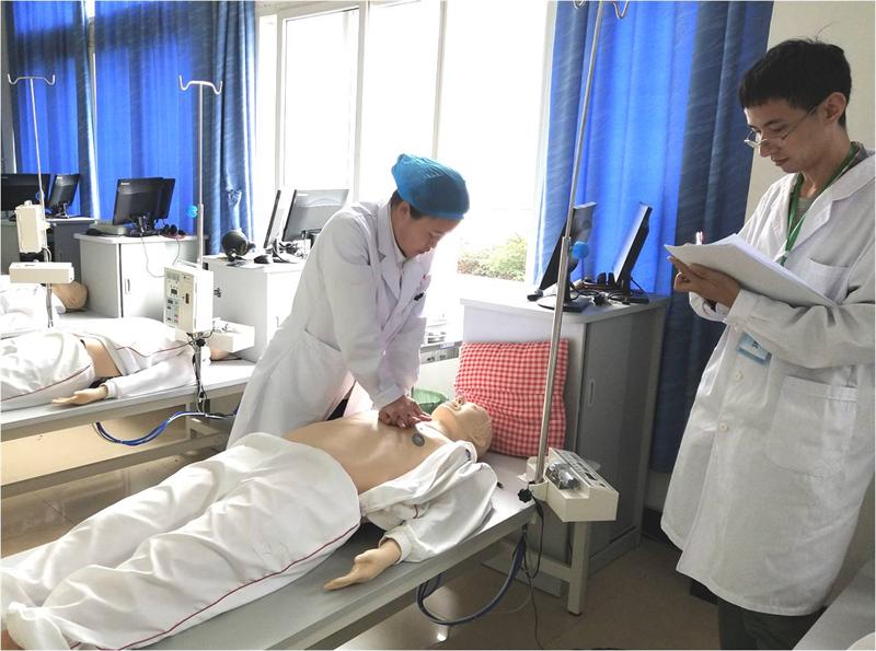 初赛与《临床综合实训》课程技能考试相对接,于5月18日、19日举行,2016级临床医学专业307名学生全部参加。考试严格参照国家执业助理医师技能考试三站式模式,采取必考+抽考进行。第一站为病史询问及病案分析,第二站为体格检查和基本技能操作,第三站为辅助检查判断。第一、三站为必考项目,采取全年级统一笔试进行考核;第二站为实际操作,在《临床综合实训》培训的心脏检查、心肺复苏、消毒铺巾等项目中抽考1项体格检查及1项基本技能操作进行组合考核。