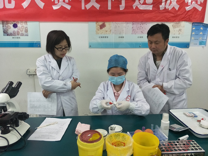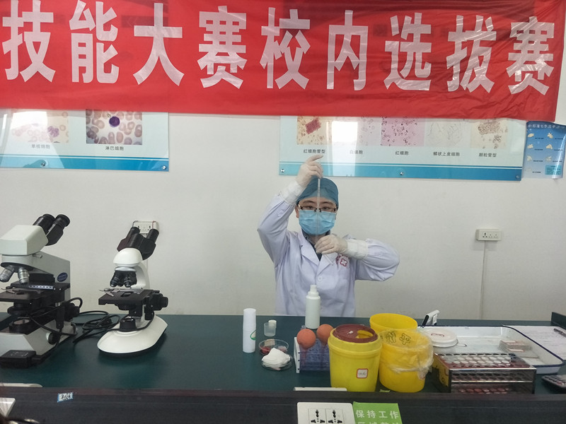 本轮选拔赛项目依然是手工白细胞计数,但在操作和准确度上有更高要求。经过前面近10天的训练,同学们在动作规范性和结果准确性方面明显提高。经过激烈的比拼,刘戈等10名同学入围,其中刘戈、李桂湘为参赛选手,祝镓等8名同学为备选选手,16名同学中最高分95.5分,最低分69分,成绩较第一轮选拔赛有明显提高,使我们对参加全国技能大赛取得好成绩有了更大信心,希望入围的选手在接下来的培训和比赛中能够继续努力、克服各种困难,勇往直前,为学校争光。
