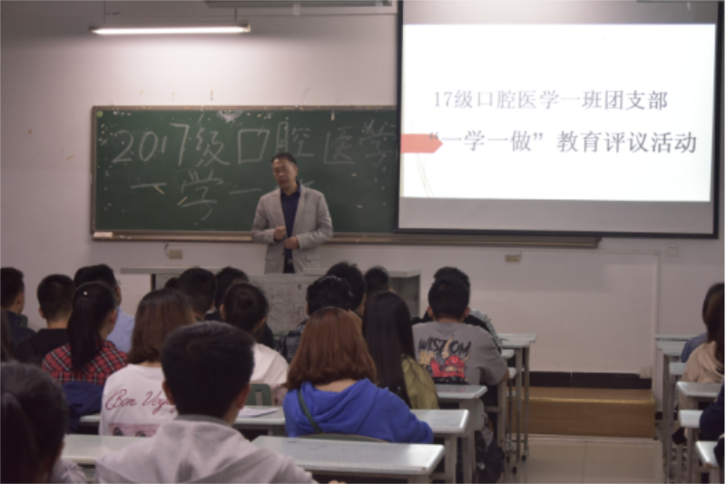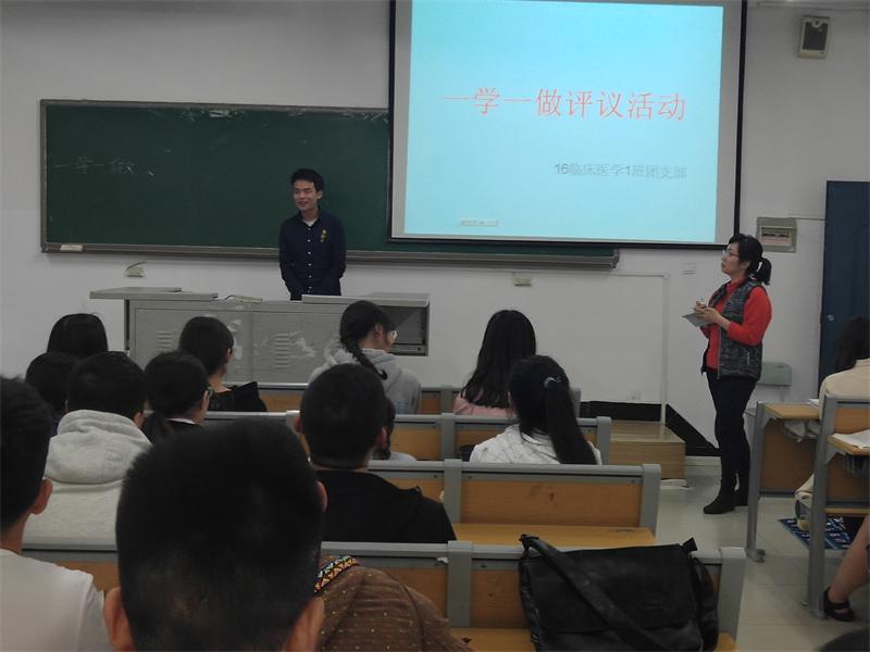 突出宣传发动。一是结合上级“一学一做”教育实践精神要求,制定《临床医学系2018年“一学一做”教育实践活动实施方案》,严格按照实施方案执行;二是临床医学系以教研活动、辅导员例会2条线,对每一位教师、辅导员进行工作培训,统一思想,明确任务,确保工作顺利实施,要求参加活动的领导和老师们,不仅参与同学们评议,还帮助同学们坚定目标、指明方向、分享方法;三是以团总支例会、团支书例会、各班班会、团小组会议4条线,将本次“一学一做”活动的目的、意义、组织形式、工作流程及评议方法等内容宣传到每一位同学,做到入脑入心,不走形式,解决实际问题,帮助努力奋斗。