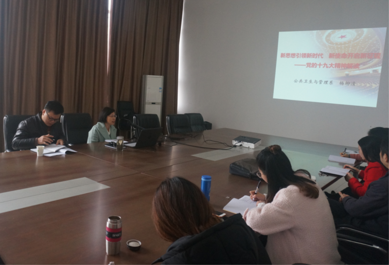 党的十九大开幕后,公共卫生与管理系通过邀请校领导解读党的十九大精神、系部内组织学习、师生互动等,多层次、多角度“浸入式”宣讲,解读党的十九大精神,掀起学习高潮,将党的十九大精神学懂、弄通、做实,把党的十九大精神作为指导我系建设发展、教育教学、专业发展、学生管理的指南针,激发全系师生开拓创新,为学校、系部发展做贡献。