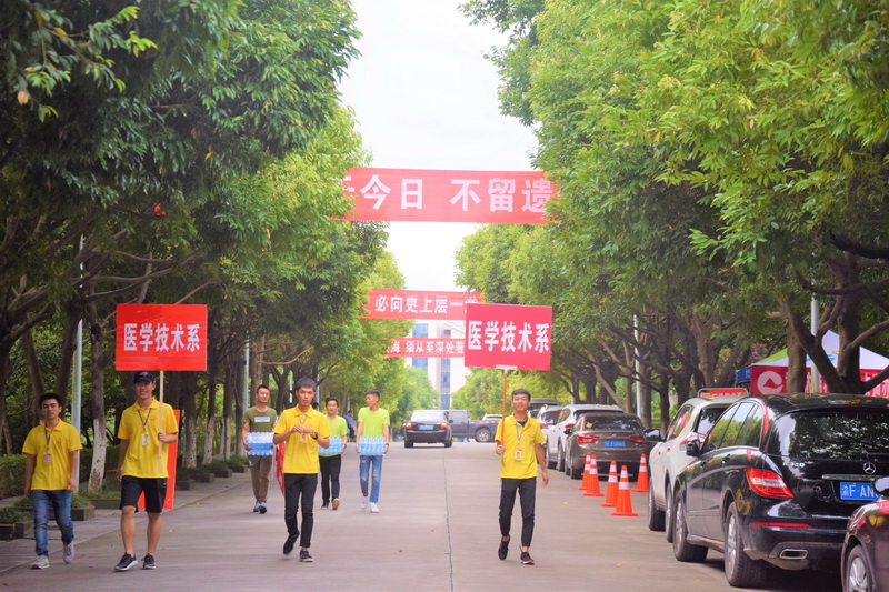 青春风采势不可挡,志愿服务暖心护航。9月4日上午八点,“迎新”正式开展。由医学技术系师生携手组成的志愿团队共分为3组,有序分布在学校三个服务站点。各类指示牌整齐显眼,使新生与家长清晰地明确报道流程,为广大新生报到带来了极大的便利。志愿者们竭诚服务,日夜守候,风雨无阻。
