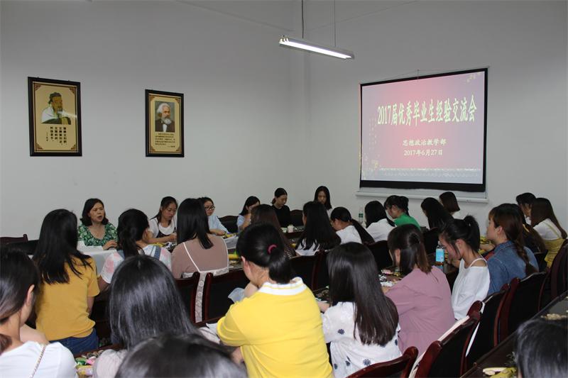 在思政教学部医学文秘专业首届毕业生毕业之际,为表达系部对毕业生的深切关怀,深入推进专业建设,加强对在校生的就业指导,帮助学生认知自我、明确发展规划,促进其成长成才,思政教学部于6月27日下午1:00-3:30在图书馆102会议室举行了首届毕业生座谈会暨优秀毕业生经验交流会。会议由梁建青老师主持,思政部主任苏碧芳、部分教师代表和2014级、2015级、2016级全体学生,共计70余人参加了本次活动。