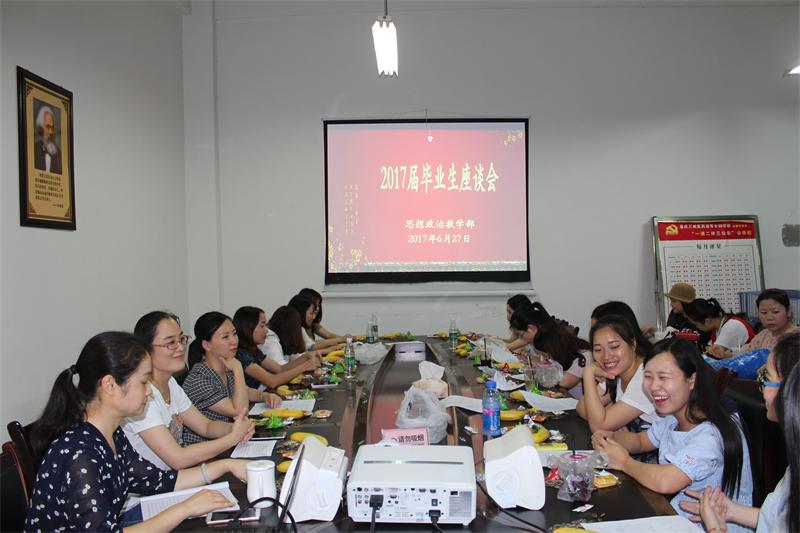 最后,思政教学部苏主任意味深长地总结发言。她首先对圆满毕业、即将踏上人生新旅程的2017届毕业生表示祝贺;其次充分肯定了2017届毕业生昂扬向上、逐梦前行的良好精神风貌;最后希望2015级、2016级同学学习借鉴,明确目标,拼搏奋进,拓展求职领域,积累实践经验,为今后的就业打下坚实基础。