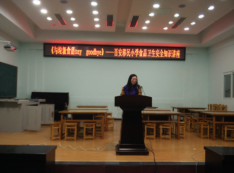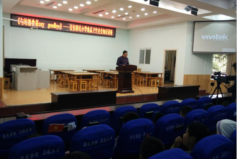讲座开始前,移民小学分管食品安全与卫生的副校长冯天赋首先发言,冯校长说到:“民以食为天,食以安为先。而现在很多不健康的食品正在慢慢的侵蚀着青少年的健康,影响着青少年的成长。俗话说病从口入,因此保障食品安全任重道远,无论什么时候都要绷紧食品安全这根弦”。