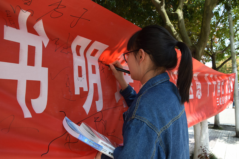 此次宣传活动形式多种多样,共分为书写便签、普法宣讲、有奖抽答、横幅签字四个板块。活动过程中,工作人员大力宣传法律知识、弘扬法律精神,参与者们积极踊跃、兴致高昂。一张张呼吁守法的便签,一帧帧签满姓名的横幅,都使得活动现场充满浓厚的法治氛围,让同学们在积极参与的同时,也能收获满满,受益匪浅。