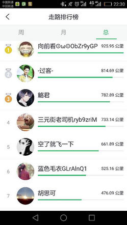 在活动开展前期,临床医学系经过调研,针对学生“宅男宅女”、“手机控”等现象,发动学生“走出寝室,走进操场”,及时将自己的健身轨迹、健身项目、健身体会,以及所消耗的卡路里等内容进行分享,并根据消耗的热量总数及运动里程总数排名进行评优,以引导更多的同学参与运动,提升身体素质。在活动开展过程中,通过积极落实宣传工作,努力做好组织发动,注重趣味导向,努力覆盖每一个班级、每一个宿舍,最终,超过全系50%的同学参与运动、参与分享,在校内营造了良好的体育文化氛围,切实将“三走”活动“抓广、抓响”。在评优表彰中,为防止学生弄虚作假,虚报成绩,临床医学系团总支利用“咕咚运动团”的分享功能,将每日运动量上报统计,以真实成绩排名,充分发挥体育锻炼在提升学生综合素质,立德树人等方面的积极作用;另外,为提高学生的参与积极性,以每月统计排名的方式给予激励,做到持之以恒,从而将活动“抓实、抓长”。最终,2014级临床医学6班学生张英池以865.85公里的总运动里程数,获得2016年春季学期“咕咚全民健身活动”第一名;2015级临床医学1班学生杨柳则凭借925.95公里的总运动里程数,获得2016年秋季学期“咕咚全民健身活动”第一名。