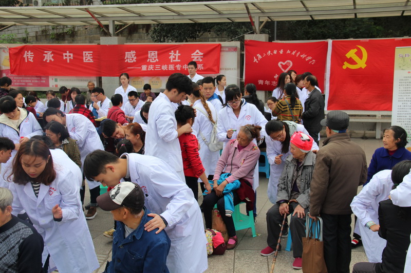 2016年11月5日,中医系“爱心义诊团队”举办“中医药文化进社区”大型义诊活动,本次活动以“传承中医、感恩社会”为主题,由系部党总支书记董江峡带队,中医系专家杨德全教授、系部各专业老师组成的专家团队及青年志愿者组成的义诊队伍共计50人参加此次活动,为531名群众进行了义诊服务。