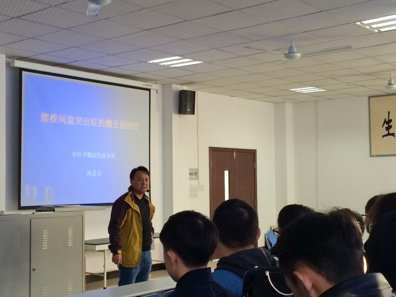 2016年12月1日下午,难得的冬日暖阳,贵客临门,中医系康复教研室很荣幸地邀请到了三峡中心医院百安分院脊柱脊髓损伤康复科陈建龙主任为康复治疗技术专业学生做专业讲座。