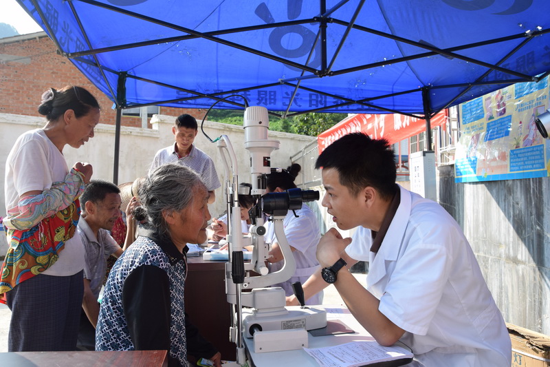 7月10日上午,“萤火虫”爱心医疗服务团22人协万州阳光眼科医院五桥分院陈果主任及3位医生在老屋村村委会开展“攻坚脱贫义诊送健康”服务活动。此次义诊包括常见眼病筛查、视力检查,血糖、血型、血压的检测,推拿按摩,乙肝、结核病、肺炎等常见病的预防知识宣传,共计服务100人次。