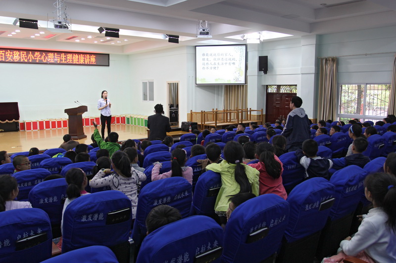 呵护心灵,快乐成长 2016年4月19日、5月18日下午生命科学馆老师分别在百安移民小学、茨竹中心小学开展了系列科普讲座活动之《关爱心理健康》。讲座现场,老师利用模型作示范,以及趣味游戏进行互动,引导孩子们培养良好的生活习惯,树立正确的健康意识。学会释放负面情绪、学会自我宣泄、改变自身心态、正确面对现实,帮助他们树立信心、确立目标,鼓励他们勤奋学习、立志成才。同学们兴致勃勃,认真聆听,全校其他同学也在教室收看了讲座直播。
