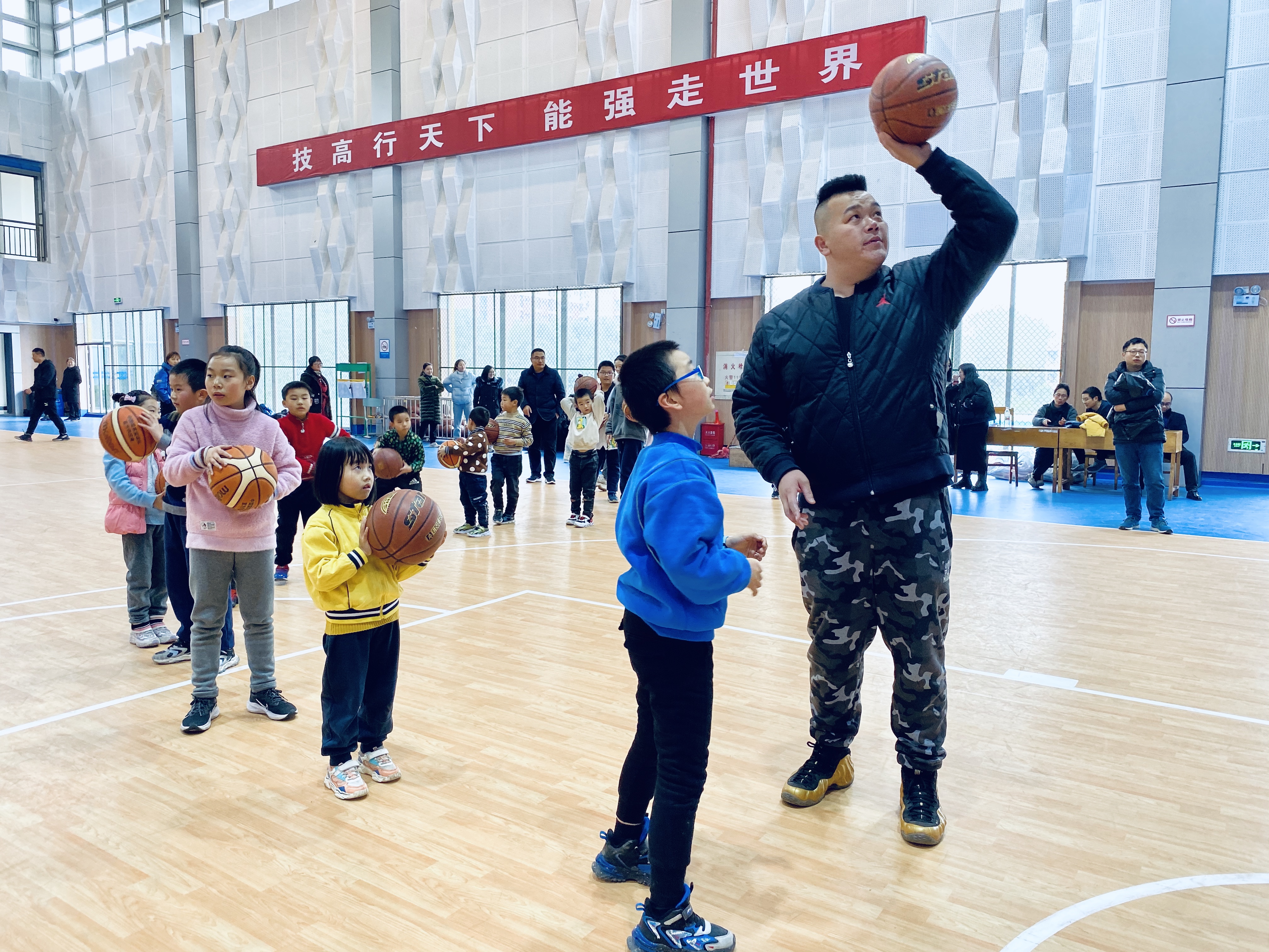 活动现场,体育教师充分发挥专业特长,通过热身练习、游戏活动、技术指导等环节,让小朋友和家长体会到运动的乐趣,在参与过程逐步培养大家运动的意识和习惯。老师们积极参与、热情互动。孩子们满头大汗、欢呼雀跃。欢声笑语回荡整个体育馆,给冬日里的校园增添了生机和活力。