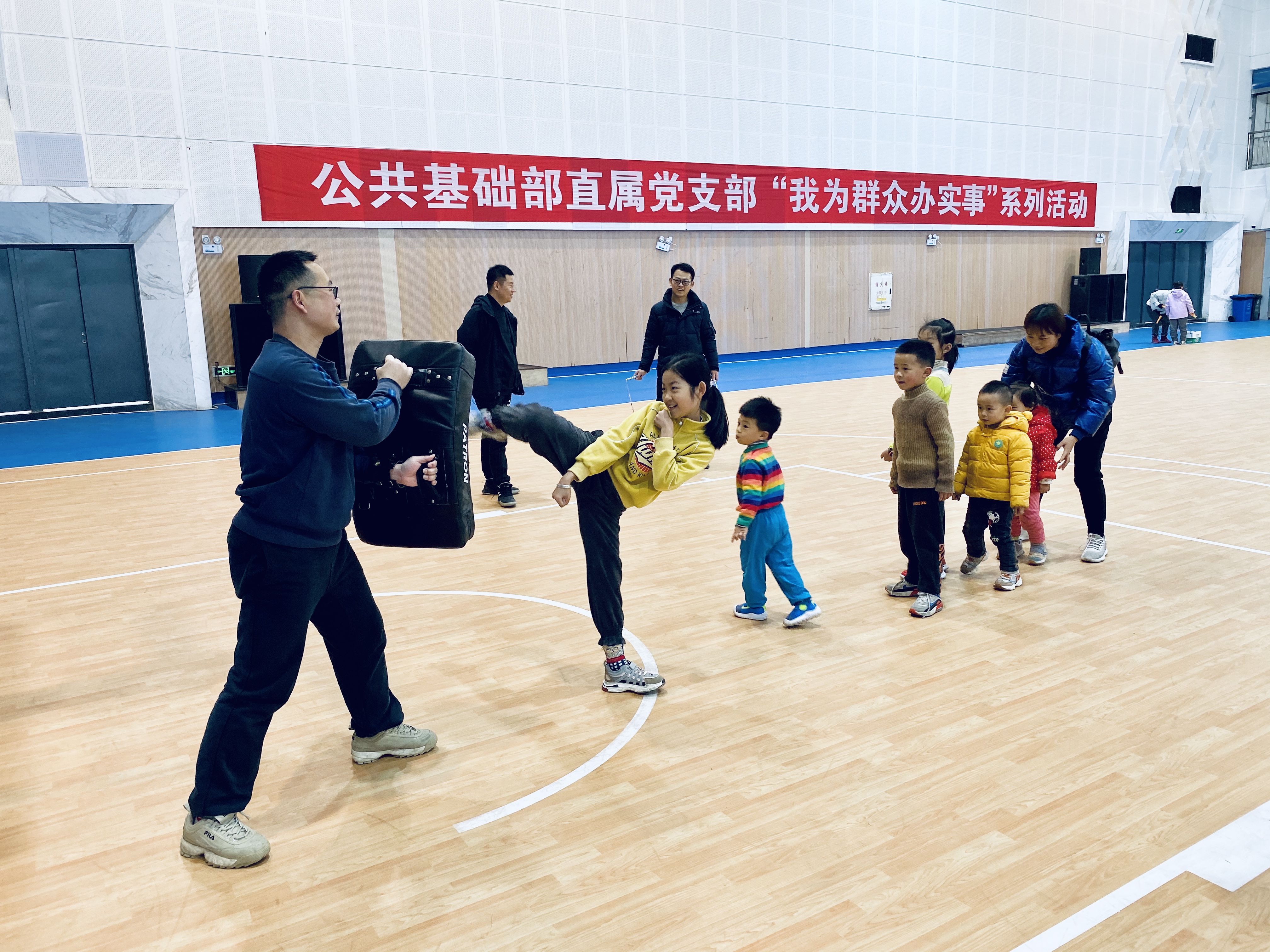 此次活动面向全校教职员工子女,开展篮球、武术、跳绳三个项目的运动技术指导。活动前,围绕部门工作特点和服务对象的实际情况,制定了详细的活动方案,安排具体分工,选派优秀指导教师根据小朋友年龄特点设计活泼有趣、安全有保障的指导内容。全校共有50余名小朋友及家长参与了此次活动。