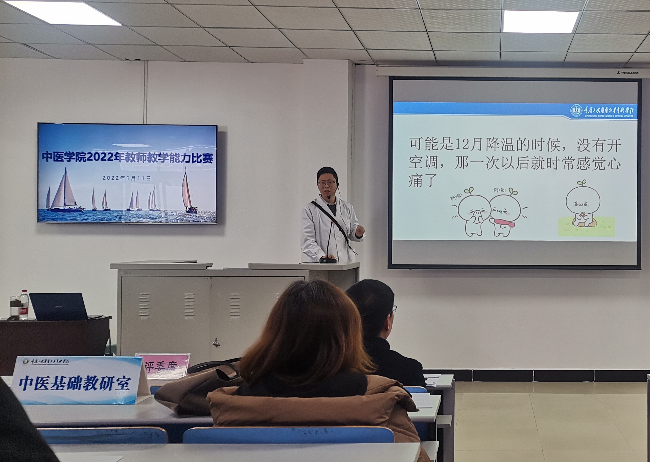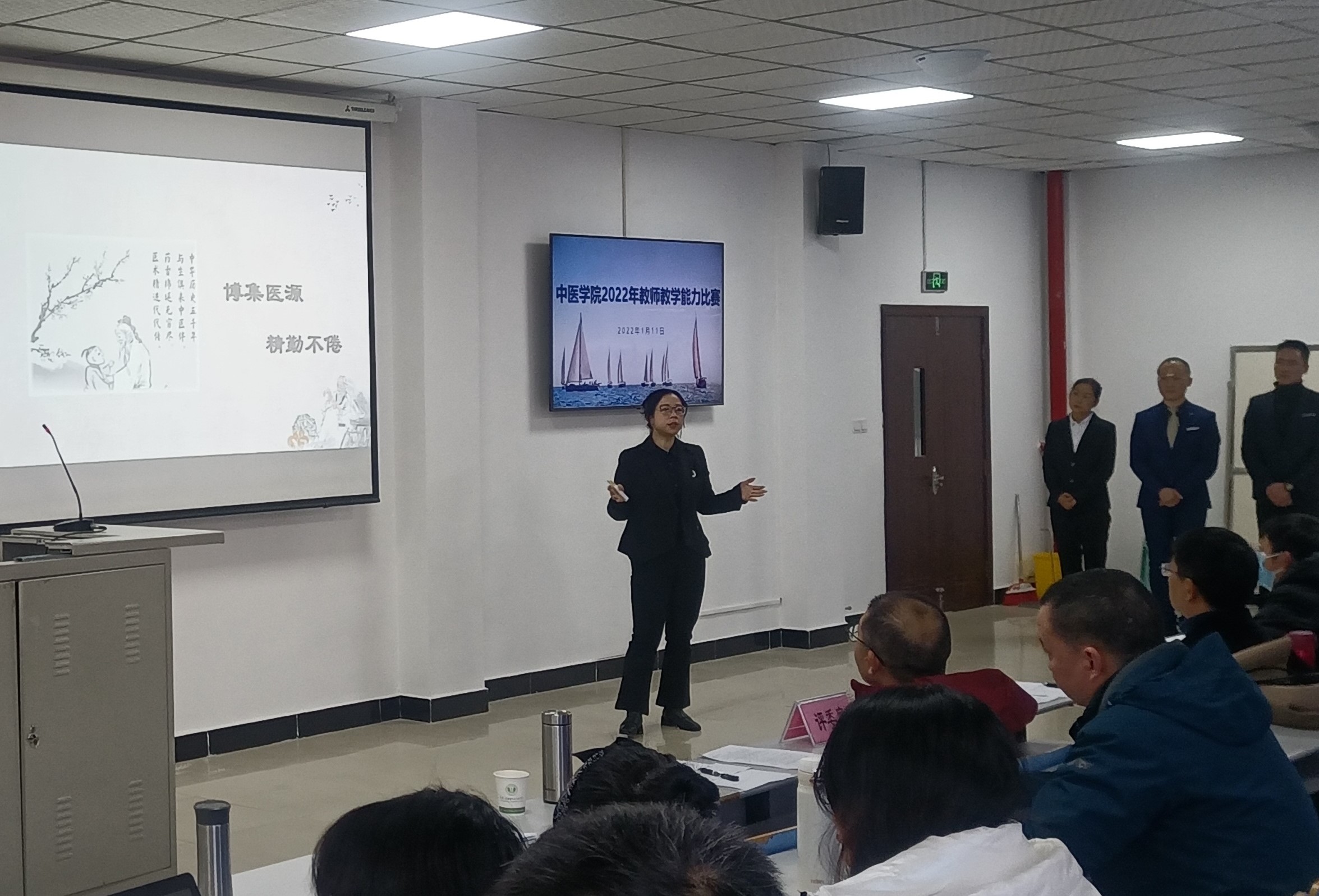 为推进学院“三教”改革,提升学院教师的教学能力,中医学院于1月11日下午在第二实训楼403教室举办了2022年教师教学能力比赛,7个教研室分别组队参赛。
