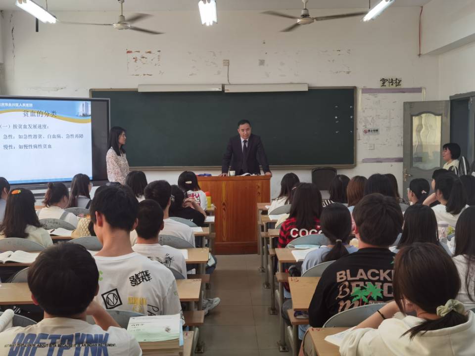 2022年4月26日,临床医学院院长赖登祥带队,前往永川区人民医院教学基地开展教学交流、学生座谈、进班听课等调研交流工作,永川区人民医院副院长范华侨、侯明英,医务科科长杨锡智、科教科科长谢怀益、基地教学负责人吴云会和基地班辅导员等共计10余人参加了交流活动。