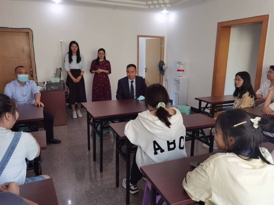 会后,赖登祥一行进班听课,了解学生的课堂状态,对任课教师课前备课、课堂教学等进行指导交流。以讲座形式,对全体同学转达了学校对基地班学生的关心,教育和引导同学们把握机遇、认真学习、打牢基础、提升素质、成才成长。在与学生的座谈中,了解了学生学习、生活、住宿等方面的情况,学生黄晓芳表示:“非常感谢学校对我们永川基地班学生的关心,我们一定会认真学好专业知识,不辜负学校与永川区人民医院对我们的教育与付出”。随后,在侯明英的陪同下,赖登祥一行实地调研了“一带一路”重点项目——中新肿瘤医院。