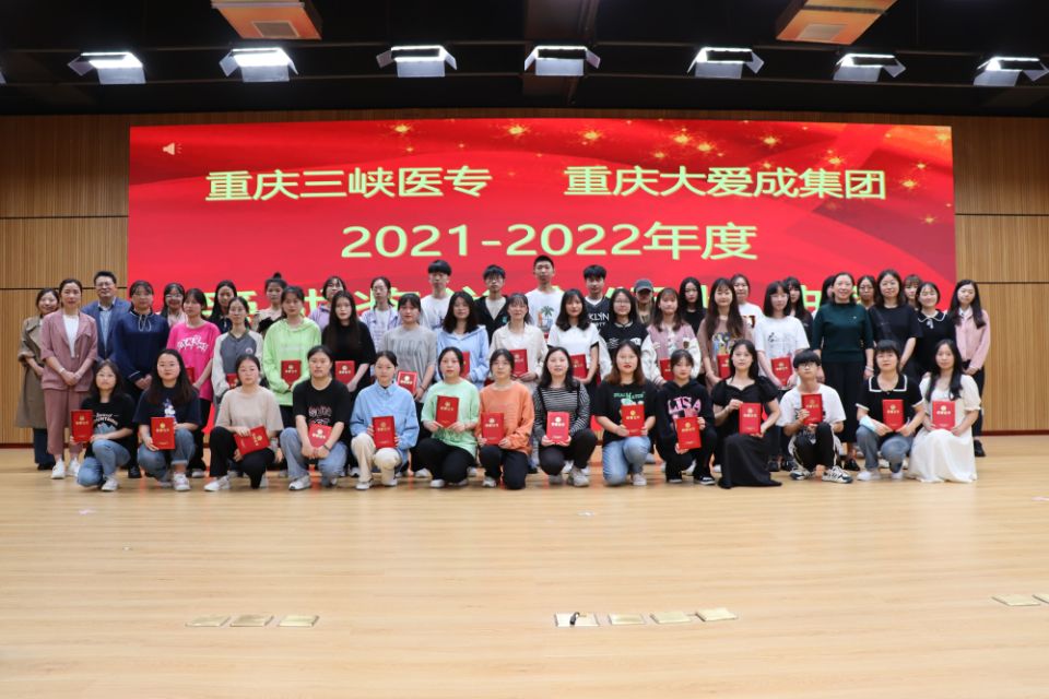 近日,我校医学技术学院与重庆大爱成科技(集团)股份有限公司在四教学术报告厅举行眼视光技术专业2021-2022年度“爱成奖学金”颁奖仪式。重庆大爱成科技(集团)股份有限公司人事总监汤晓芹、人事部主管李小英、万州片区经理邱刚,我校医学技术学院书记罗玉琳、院长郝坡,眼视光技术专业教研室老师及辅导员参加颁奖仪式。此次奖学金名额共 60个,其中一等奖8名(1000元/人)、二等奖16名(800元/人)、三等奖36名(500元/人)。