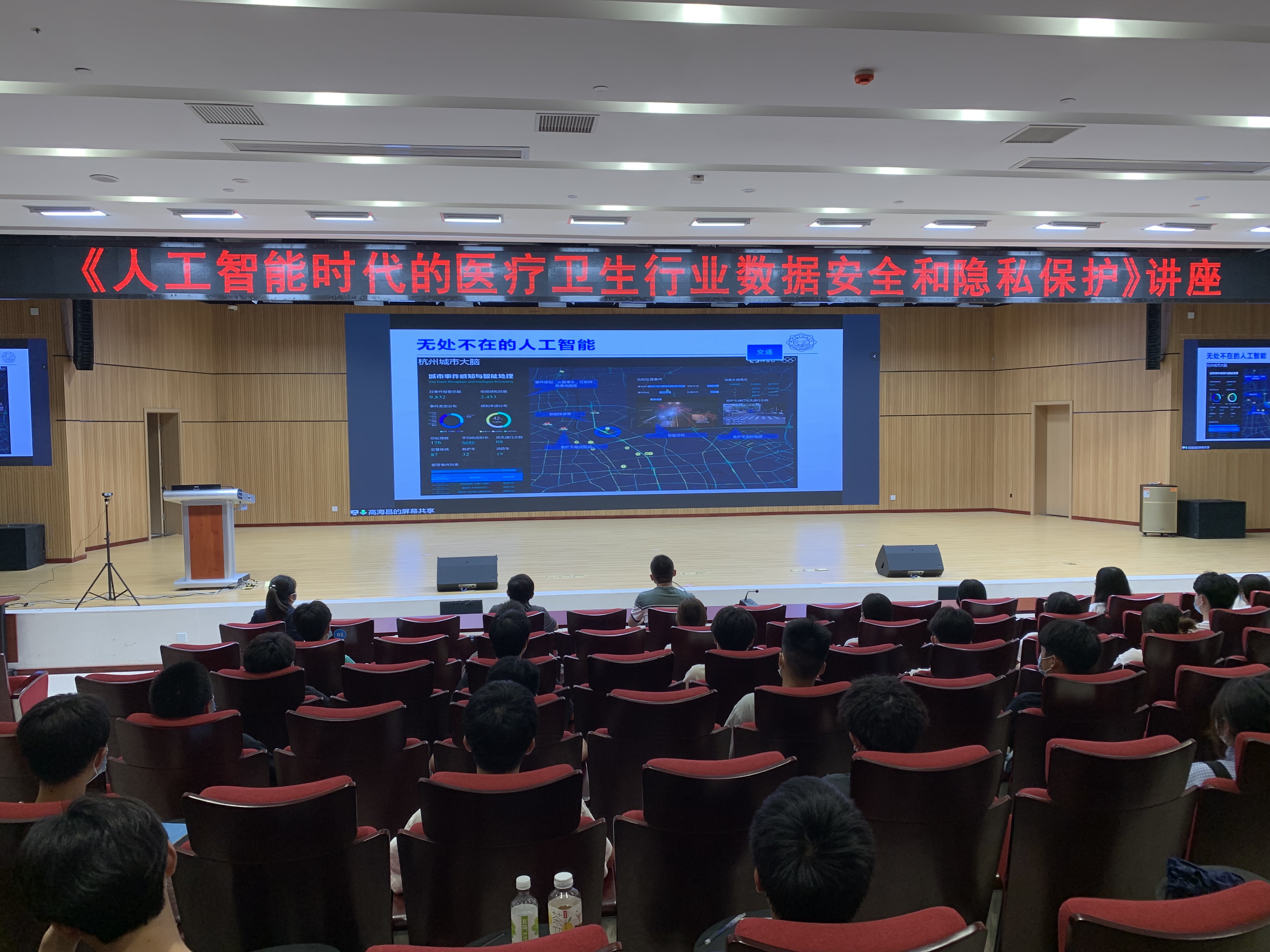 高海昌教授围绕《人工智能时代的医疗卫生行业数据安全和隐私保护》主题,结合“健康中国2030”政策内容,立足当下人工智能发展和应用的大背景,运用实际典型案例和数据分析方式,从人工智能在医疗行业的应用、AI在模型数据和算法方面的安全问题、医疗隐私保护对策三方面讲述人工智能在医疗卫生行业的整体概况和机遇挑战,为我校大数据技术类专业课程和教育教学发展方向提供了重要思路。